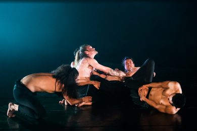 Projection design by Rowan Pierce casts light and imagery onto the dancers’ bodies adding a rich visual tapestry and opening the imagination to the multi layered aspects of this work.